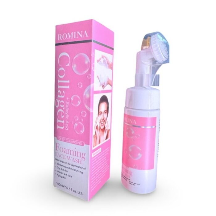 غسول رغوي للوجه يحتوي على الكولاجين وحمض الساليسيليك، مصمم لتنظيف عميق للبشرة، إزالة الشوائب، تفتيح البشرة وترطيبها، مع فرشاة ناعمة تساهم في تنظيف المسام وتقشير خفيف.